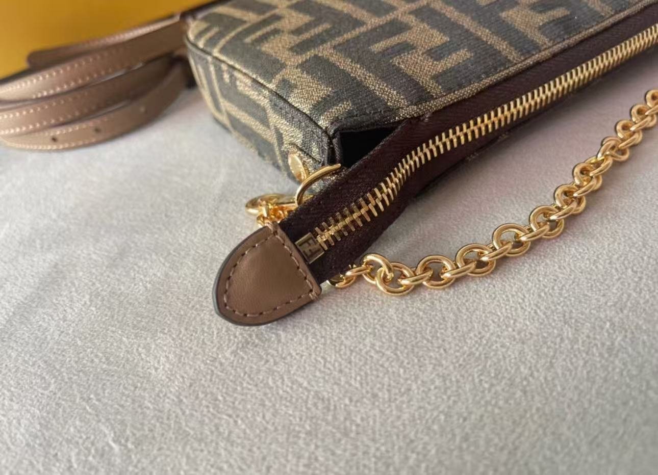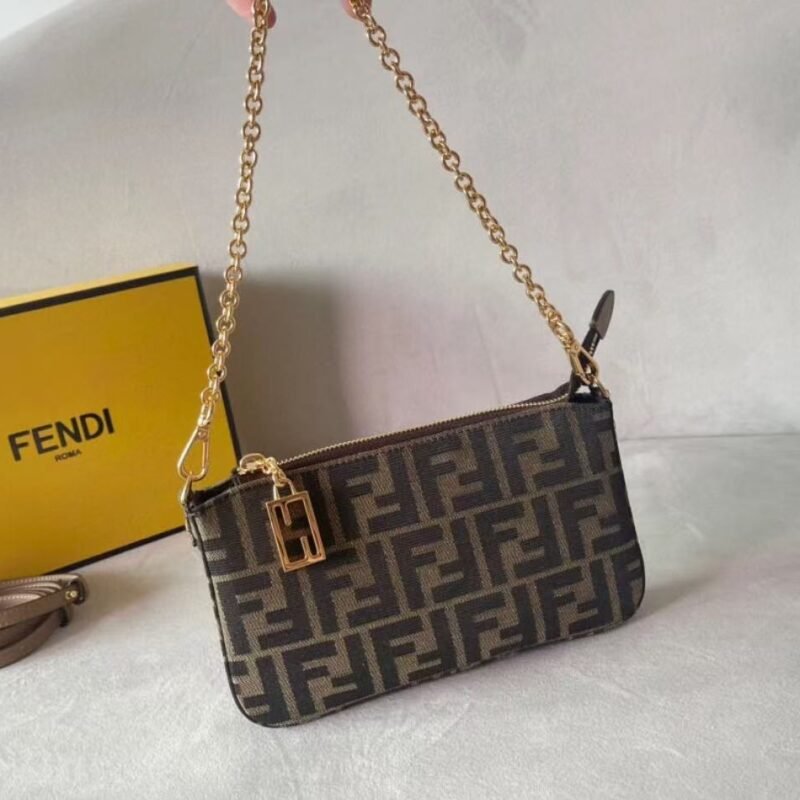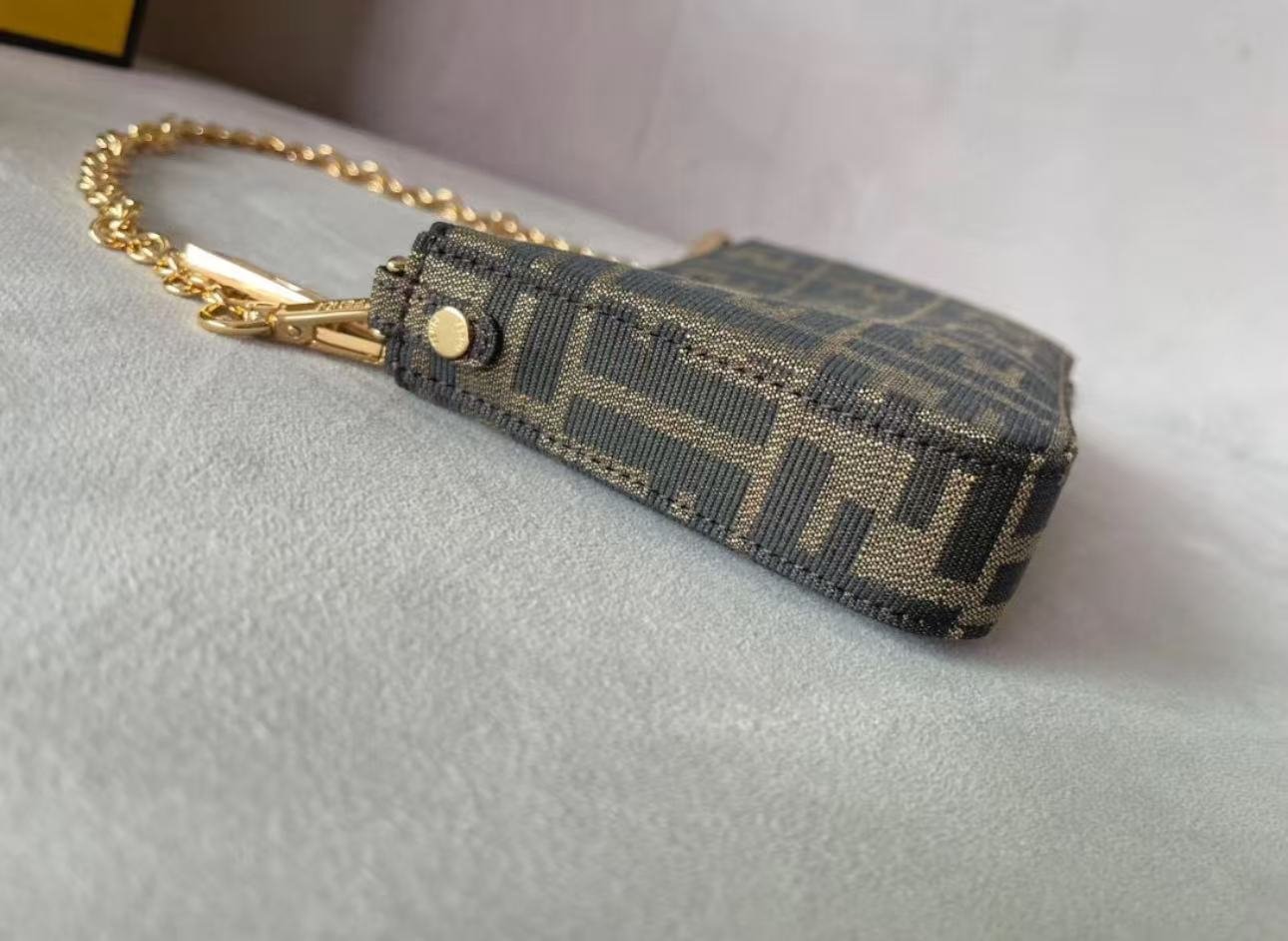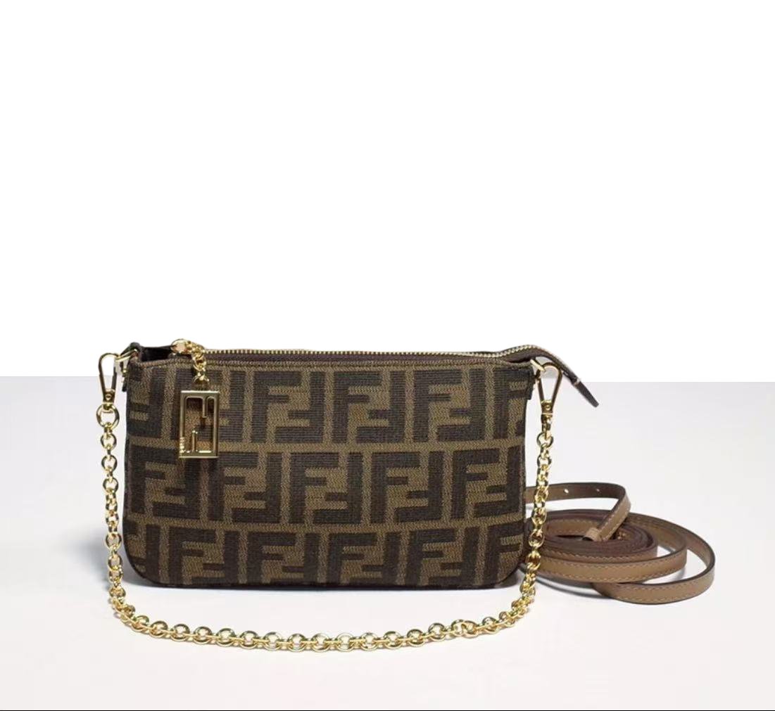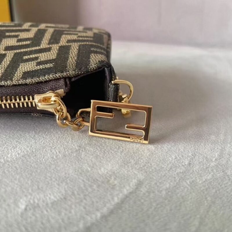 Baguette pouch made of fabric with jacquard FF motif. Closed by zipper and zipper-pull with iconic FF motif.