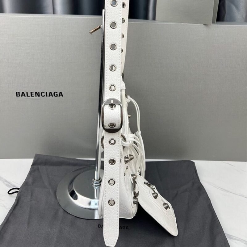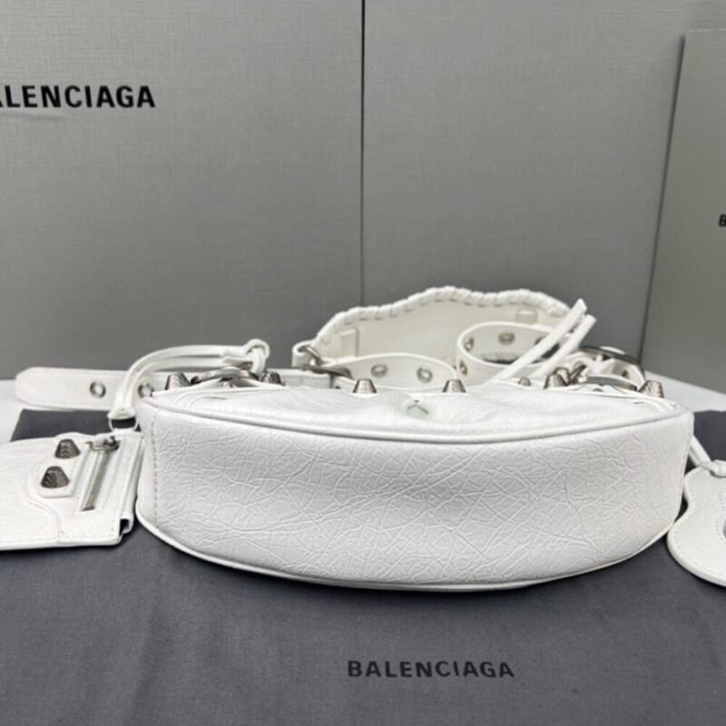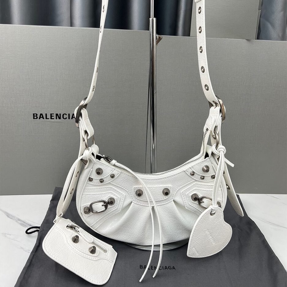 Le Cagole XS Shoulder Bag in white Arena lambskin, aged-silver hardware