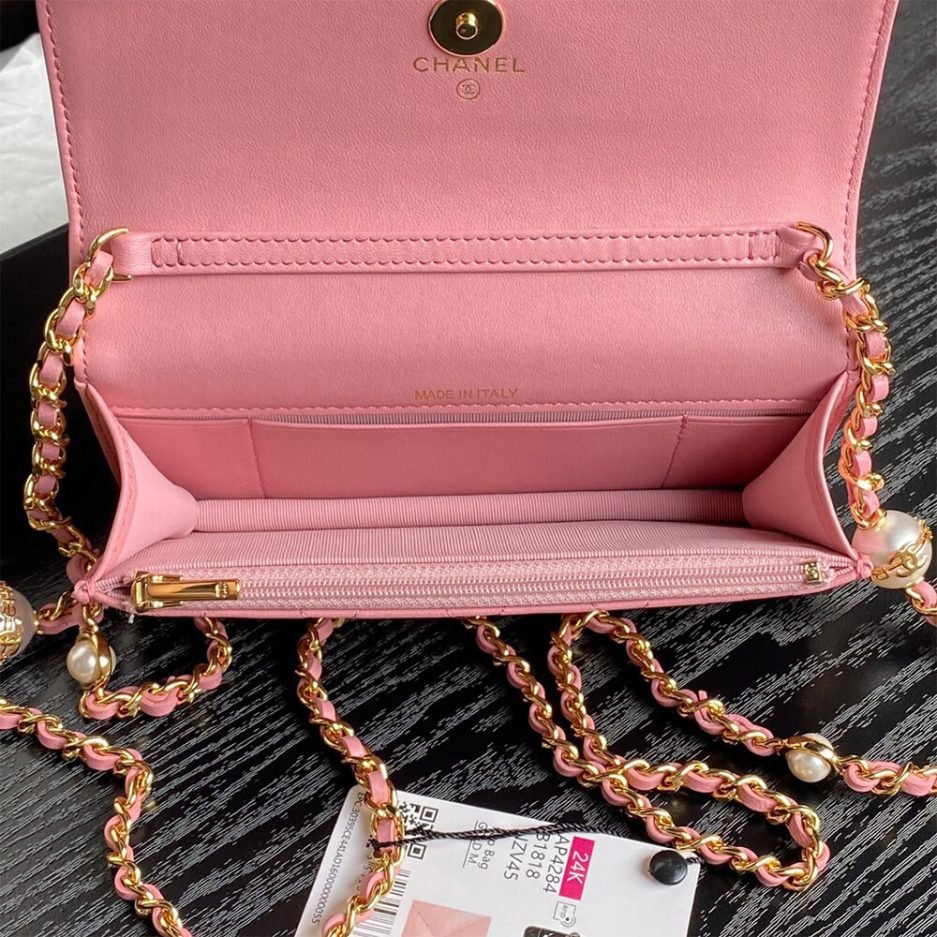 Shiny Lambskin, Imitation Pearls & Gold-Tone Metal