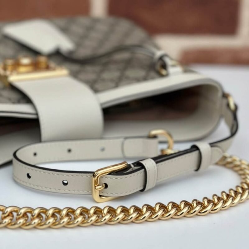 Leather and chain shoulder strap, adjustable from 21.7?? to 27.6??
