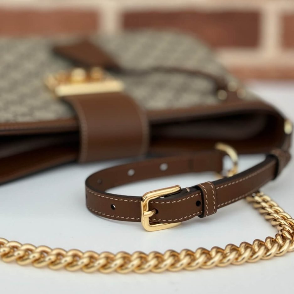 Leather and chain shoulder strap, adjustable from 21.7?? to 27.6??