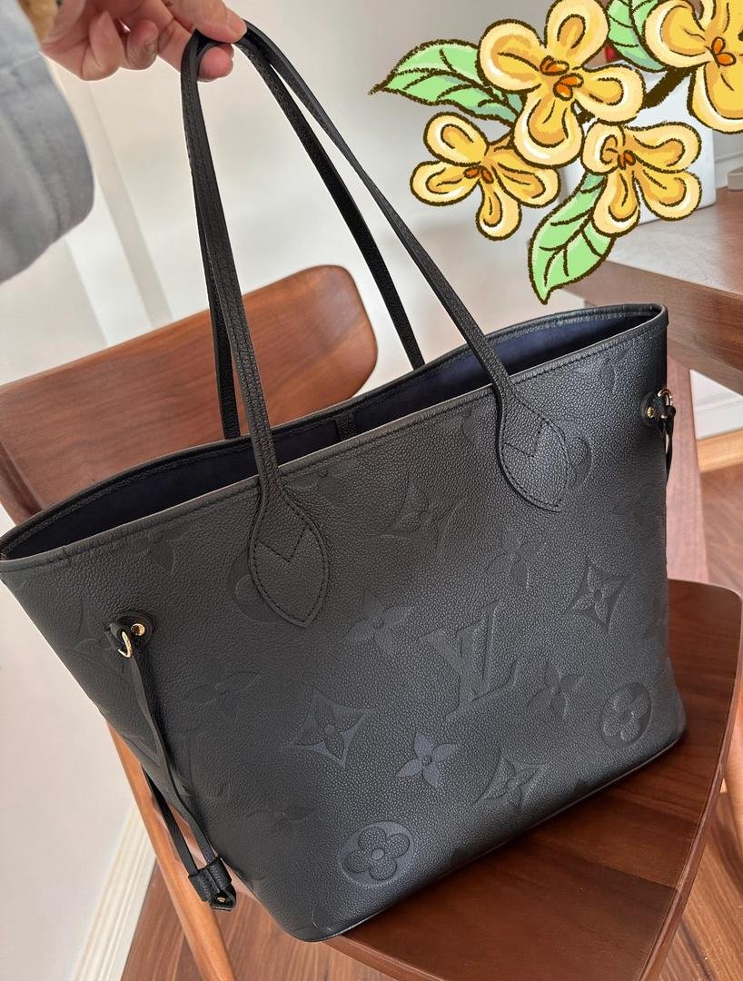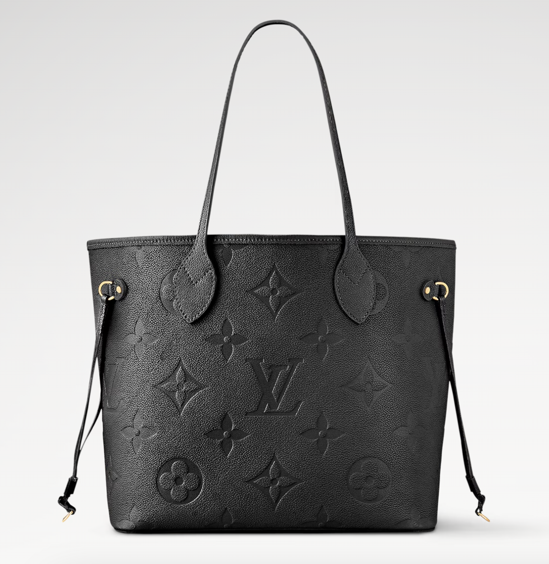 The essential Neverfull MM tote now comes in embossed Monogram Empreinte leather. Its generous dimensions make this bag ideal for everyday use while the long shoulder handles and supple leather mean it’s comfortable to carry. With the side laces cinched, this roomy carryall becomes a stylish city bag. It can be worn over the shoulder or on the elbow.