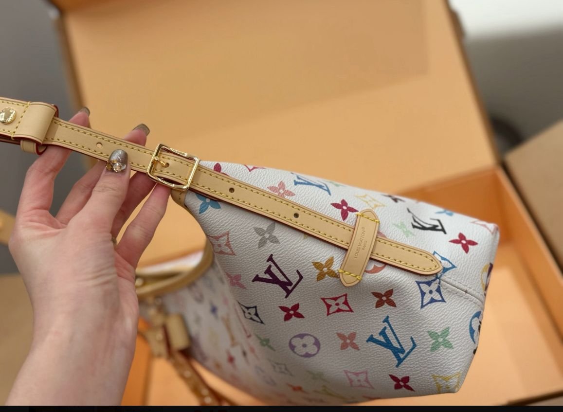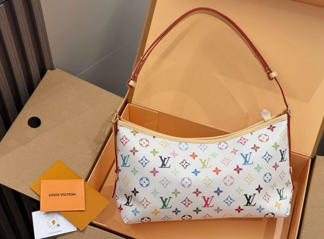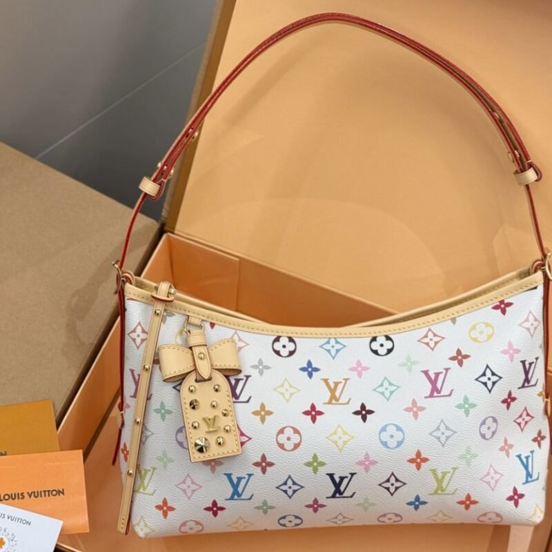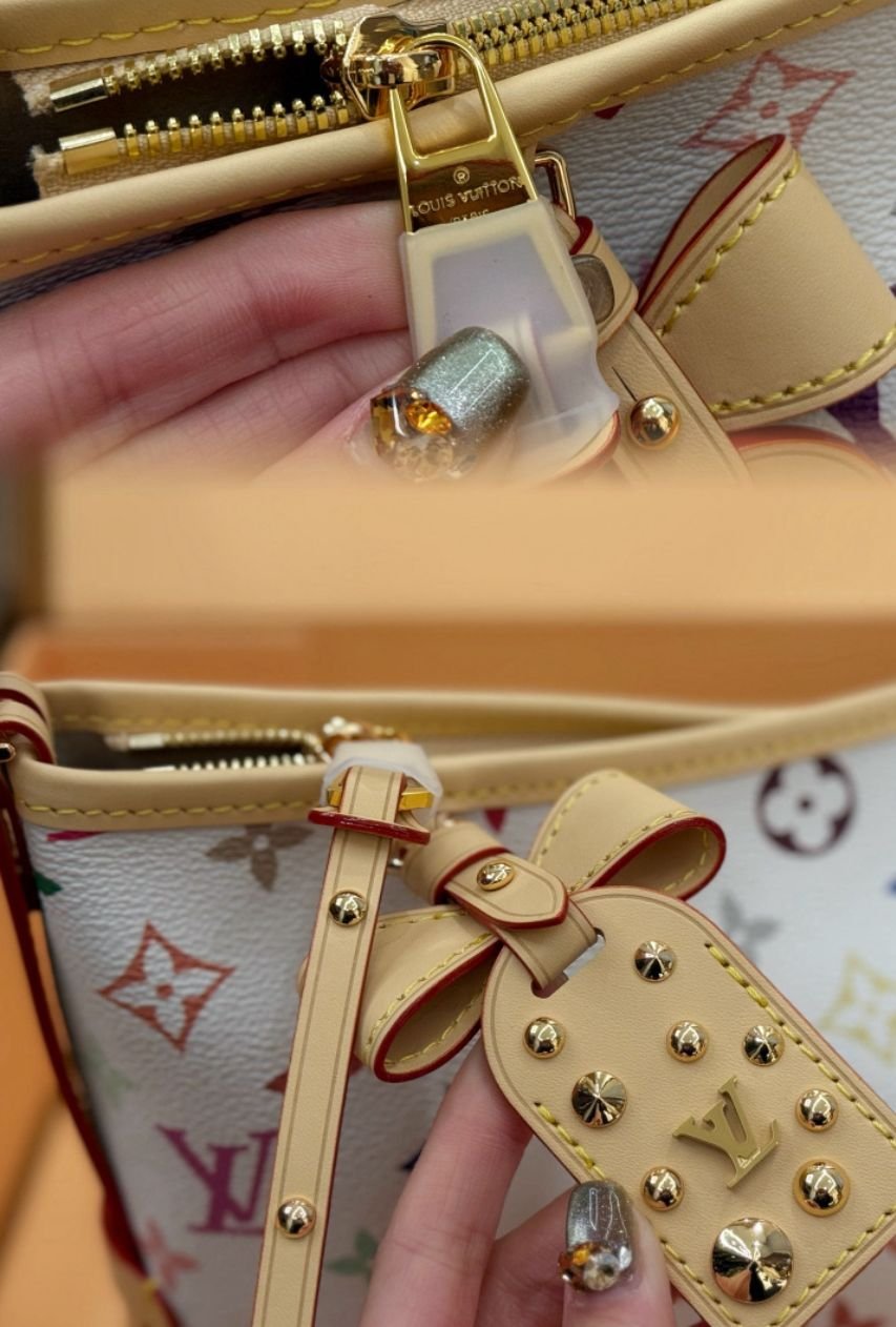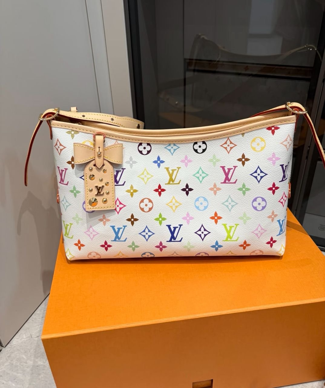To honor 130 years of the iconic Louis Vuitton Monogram, the Carryall East West is reimagined in a vibrant Multicolor palette. This edition is made from canvas decorated with the House’s emblematic pattern and includes an exclusive leather label on the inside to honor this special anniversary. It is also adorned with a removable bow tie and celebratory address tag, which is elevated with LV Decor and metallic studs.