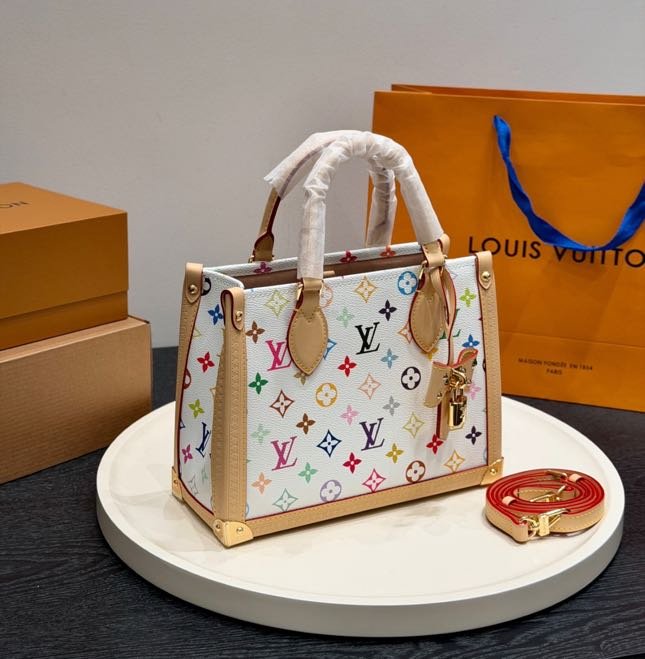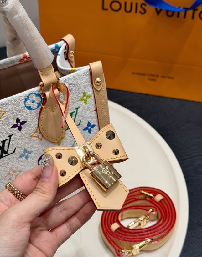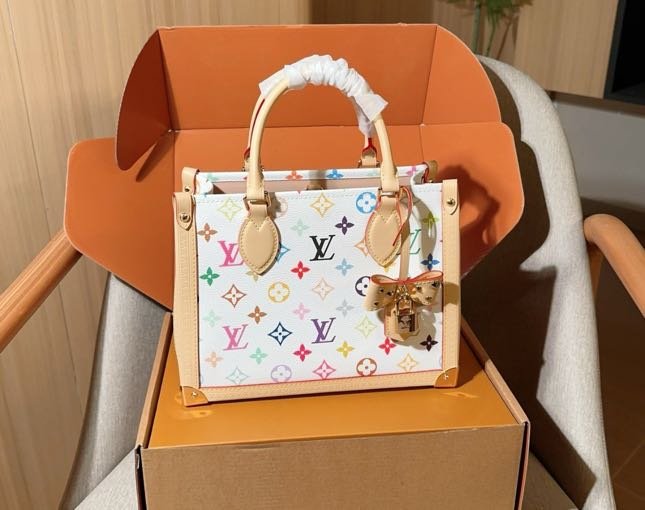 Updated for the 130th anniversary of the Louis Vuitton Monogram, this OnTheGo PM is a vibrant option for city commutes and beyond. The Multicolor design features the House’s signature emblematic pattern on canvas and is trimmed with contrasting cowhide, which offsets the gold-toned trunk corners and signature padlock. Inside, it is stamped with an exclusive label to honor this celebratory time in Louis Vuitton history.