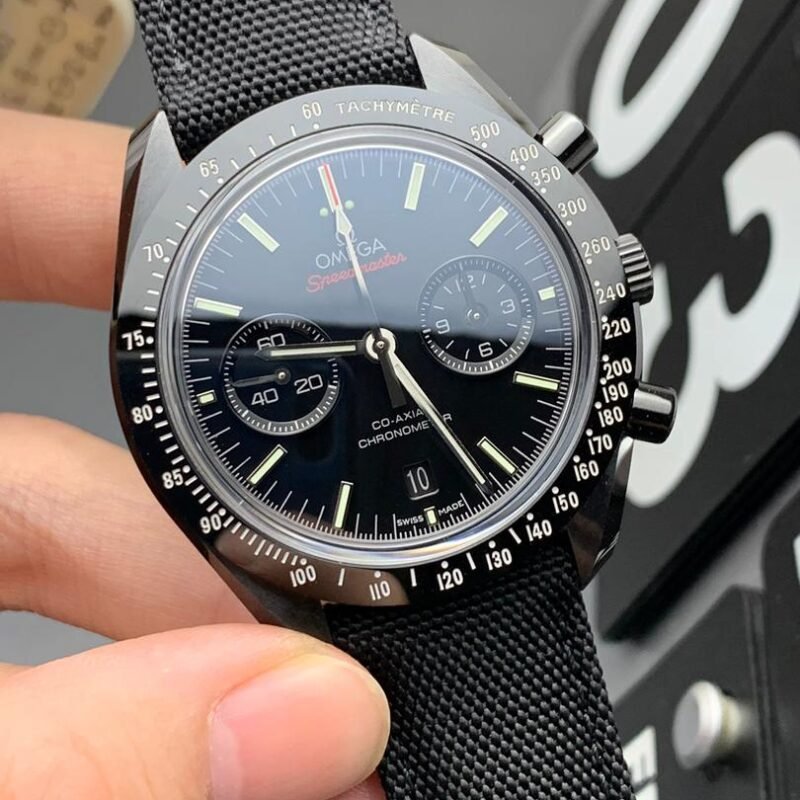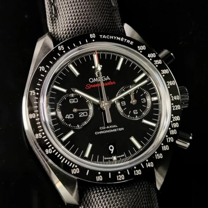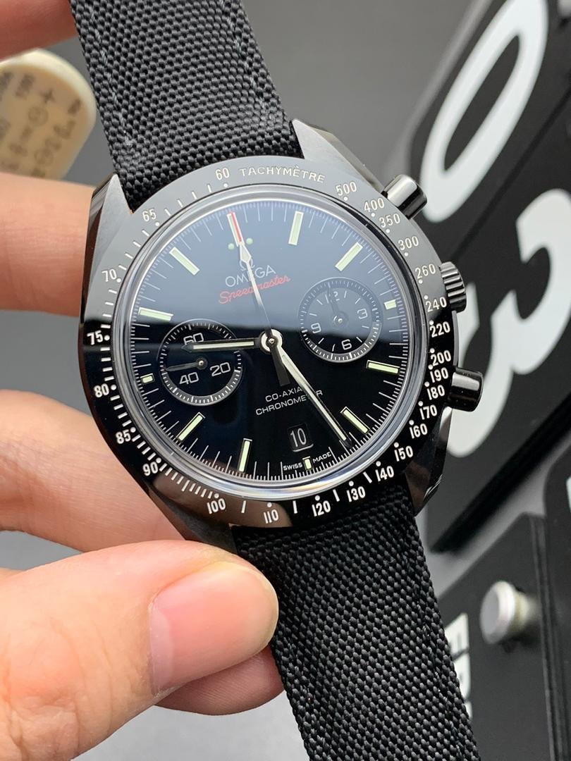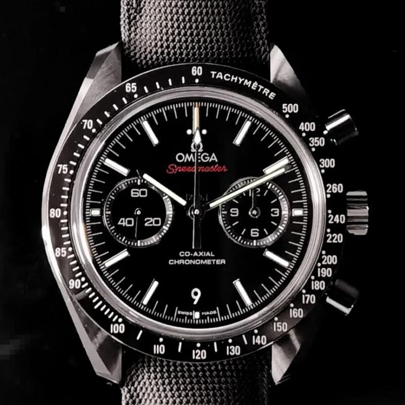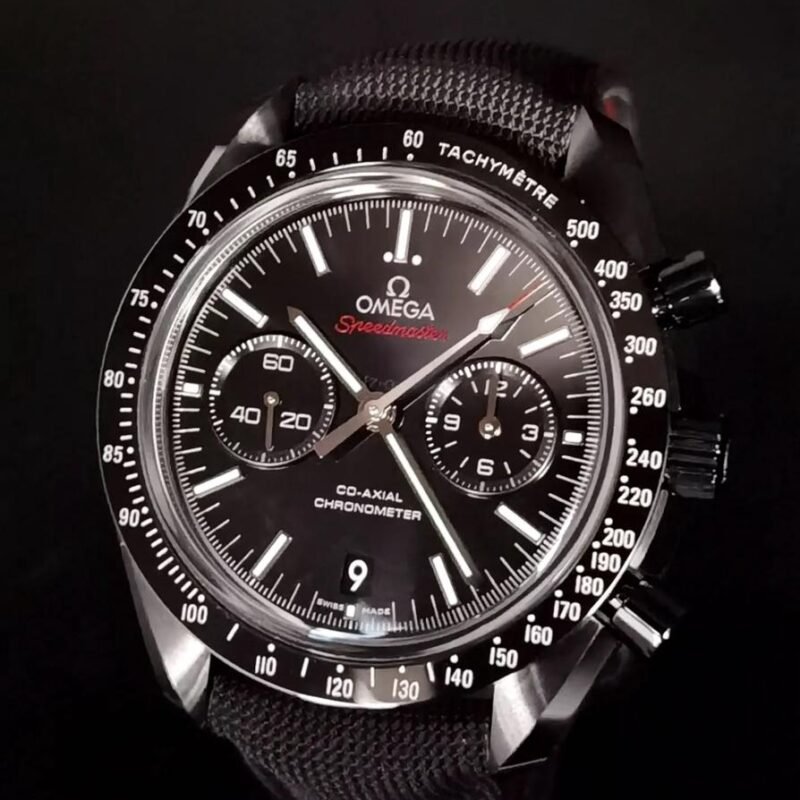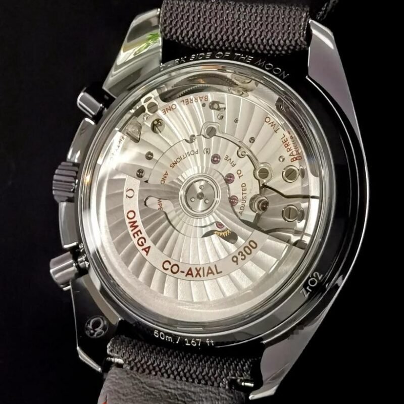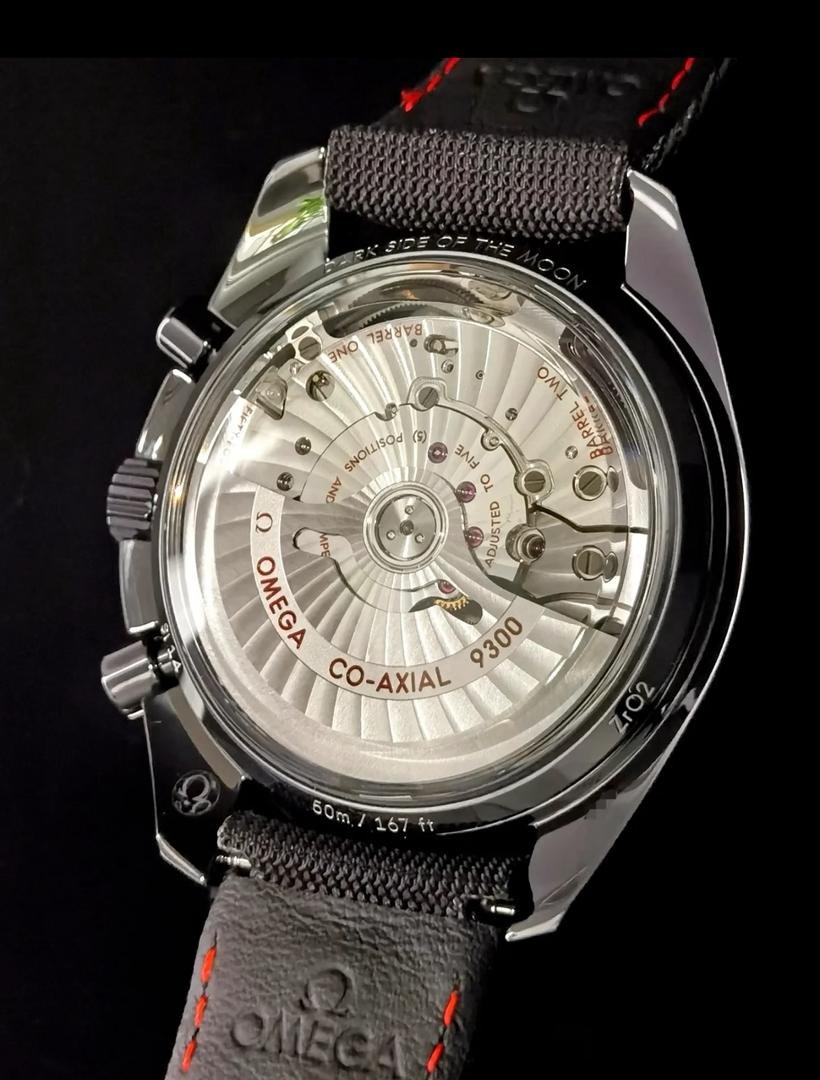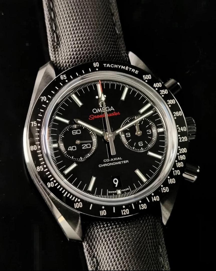 This Omega Speedmaster “Dark Side of the Moon” watch features a 44.25 mm case, masterfully crafted from black ceramic with polished and brushed finishes. Designed to pay tribute to Omega’s illustrious heritage in space exploration, the watch’s bezel is also made of polished black ceramic, adorned with a Liquidmetal tachymeter scale.