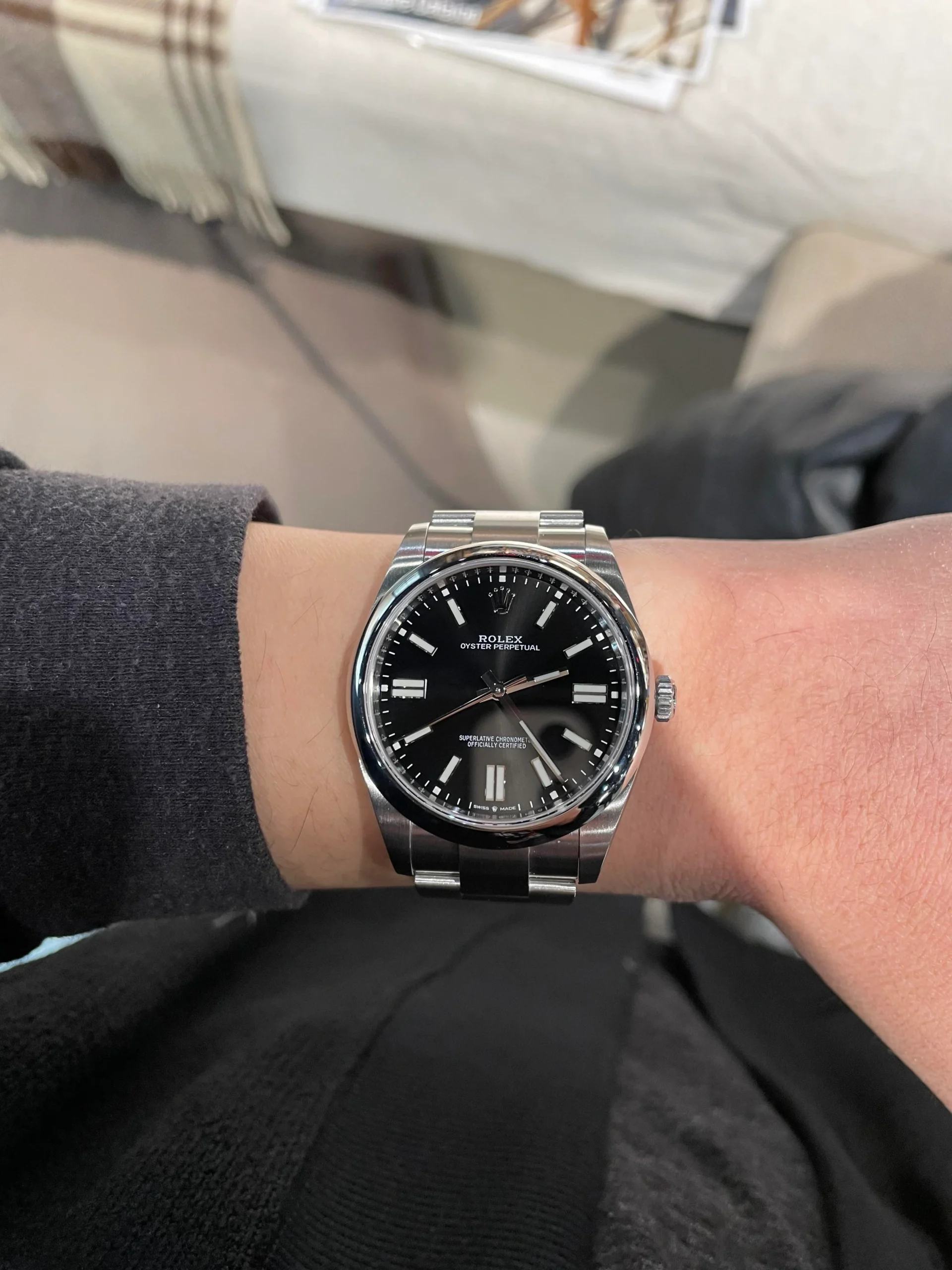 The Oyster bracelet is a perfect alchemy of form and function, aesthetics and technology. First introduced in the late 1930s, this particularly robust and comfortable metal bracelet with its broad, flat three-piece links remains the most universal bracelet in the Oyster collection. For the Oyster Perpetual models the Oyster bracelet is fitted with an Oysterclasp.