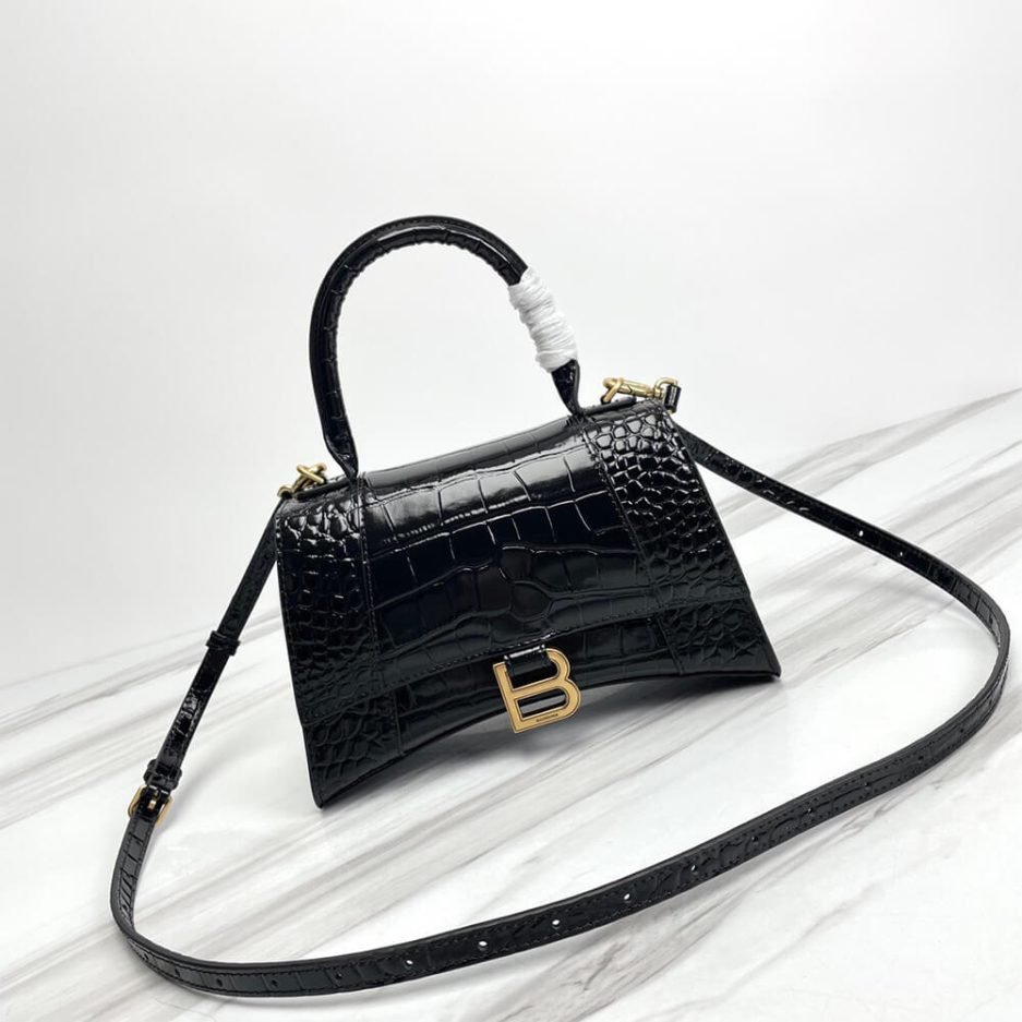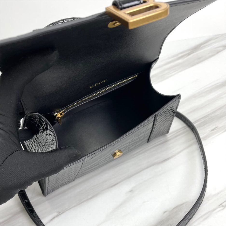 Balenciaga WOMEN’S HOURGLASS SMALL HANDBAG CROCODILE EMBOSSED