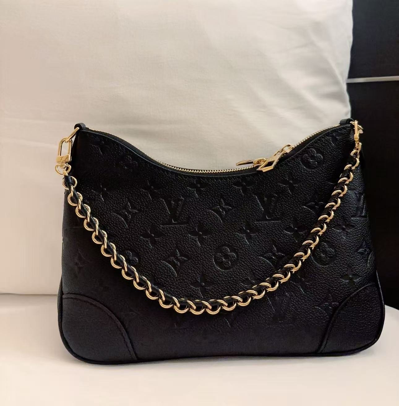 he classic Boulogne handbag is upscaled for the season in this capacious GM size, perfect for carrying a laptop and other essentials. Inspired by the archival model from 1984, this elegant design is crafted from Monogram Empreinte leather embellished with an exclusive golden braided chain that can be removed if desired. Wear it cross-body, over the shoulder or carry it by hand.