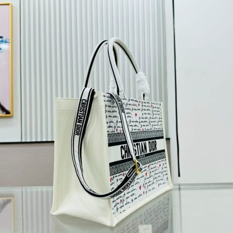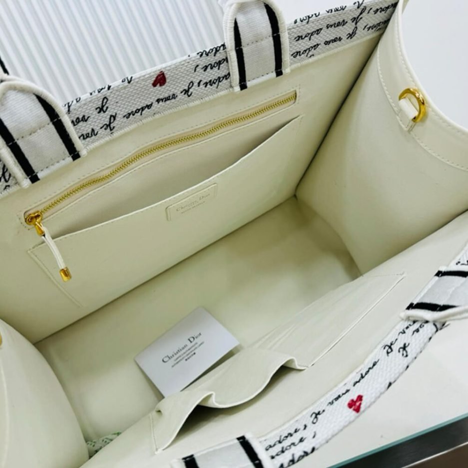 Calfskin with White, Black and Red Je Vous Adore Embroidery (36.5 x 28 x 17.5 cm)