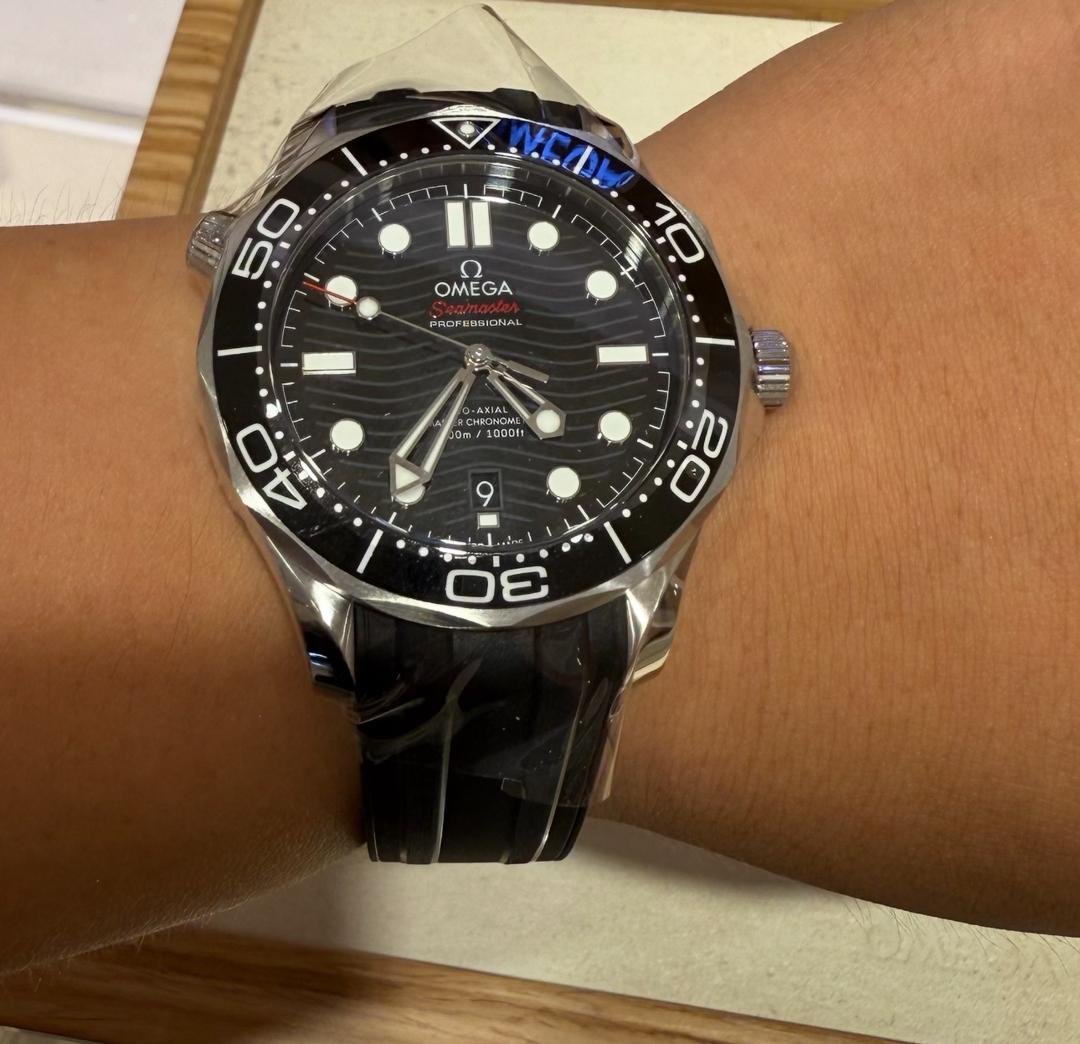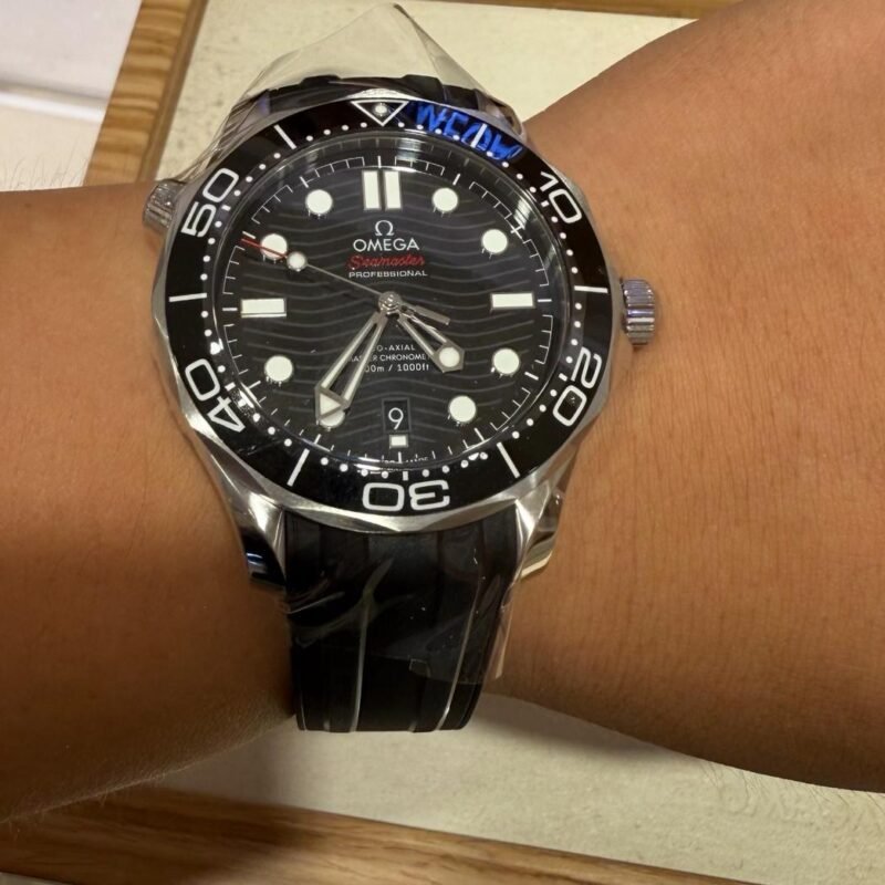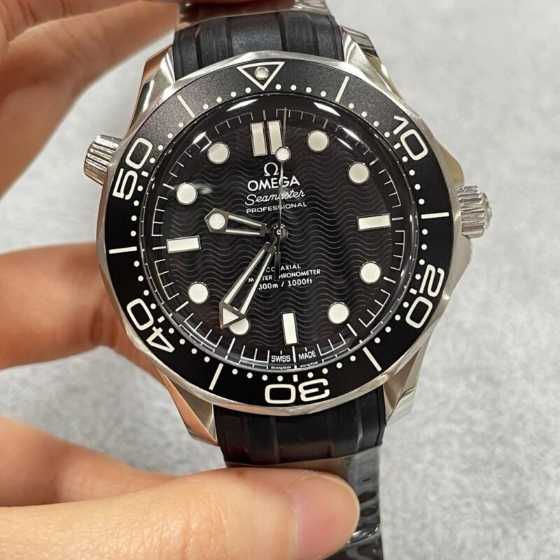 This 42 mm model is crafted from stainless steel and includes a black ceramic bezel with a white enamel diving scale. The dial is also polished black ceramic and features laser-engraved waves and a date window at 6 o??clock.