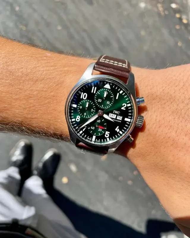 Stainless steel case,?Automatic, self-winding,?Diameter 41.0?mm,?Green dial with luminescence,?Brown calfskin strap with EasX-CHANGE system,?Strap width 20.0 mm.