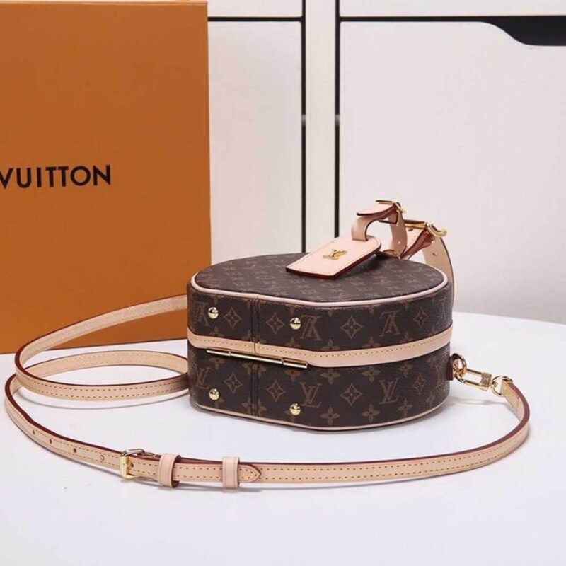 Louis Vuitton??s iconic hatbox is reimagined as an adorable day-to-evening bag. Small yet practical (it fits an iPhone 7), this exclusive piece comes in two versions: classic Monogram canvas with cowhide trim; or trendy Reverse Monogram with black calfskin.