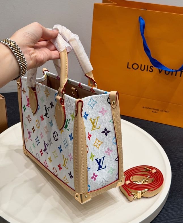 Updated for the 130th anniversary of the Louis Vuitton Monogram, this OnTheGo PM is a vibrant option for city commutes and beyond. The Multicolor design features the House’s signature emblematic pattern on canvas and is trimmed with contrasting cowhide, which offsets the gold-toned trunk corners and signature padlock. Inside, it is stamped with an exclusive label to honor this celebratory time in Louis Vuitton history.