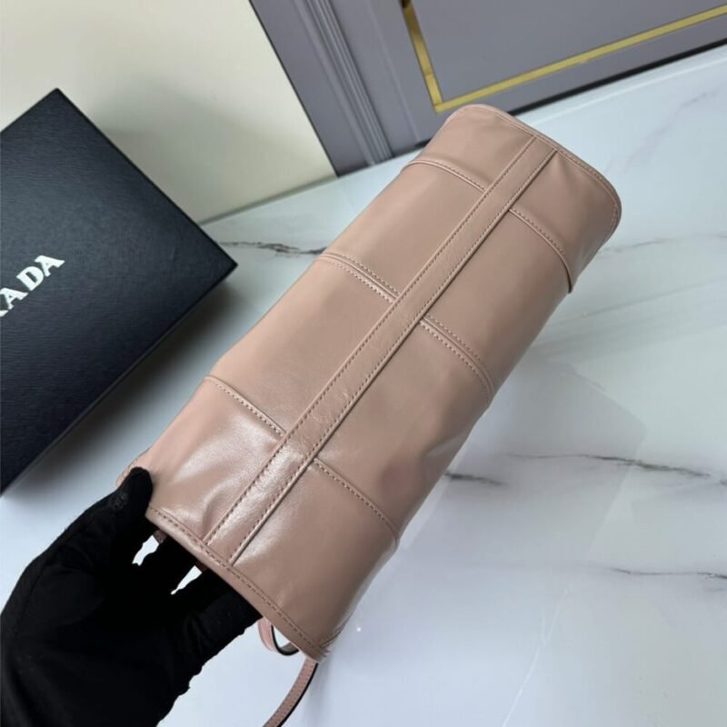 Nappa and nylon interior with center zipper compartment and zipper patch