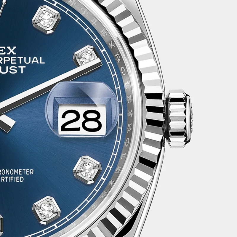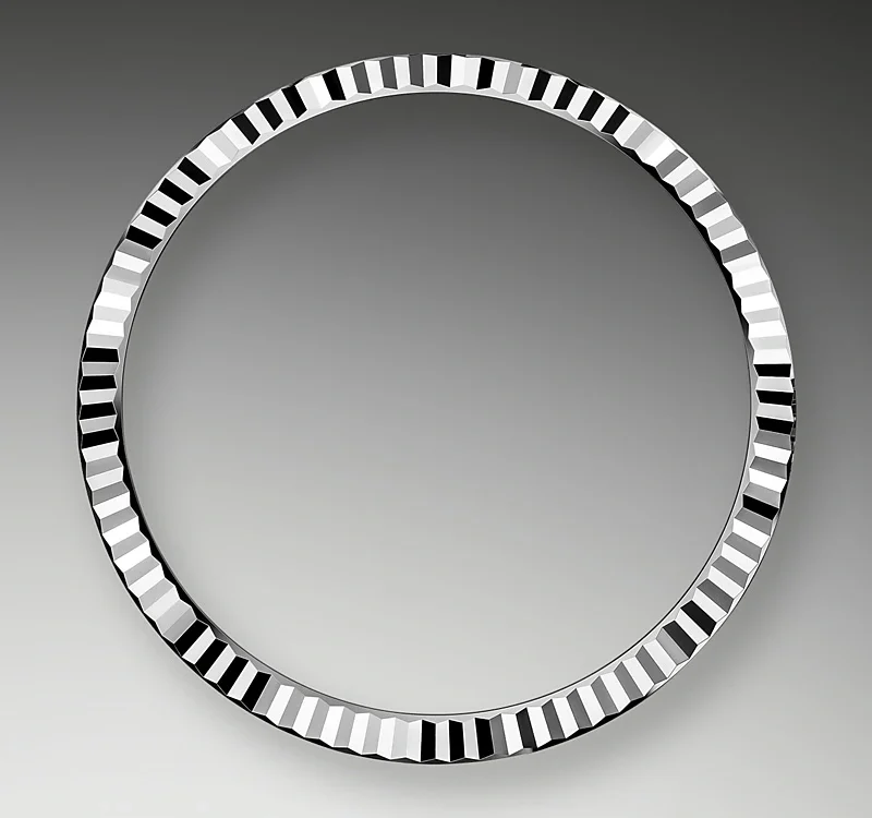 The Rolex fluted bezel is a mark of distinction. Originally, the fluting of the Oyster bezel had a functional purpose: it served to screw the bezel onto the case helping to ensure the waterproofness of the watch. It was therefore identical to the fluting on the case back, which was also screwed onto the case for waterproofness, using specific Rolex tools. Over time, the fluting became an aesthetic element, a genuine Rolex signature feature. Today the fluted bezel is a mark of distinction,?in gold on this Datejust 36.