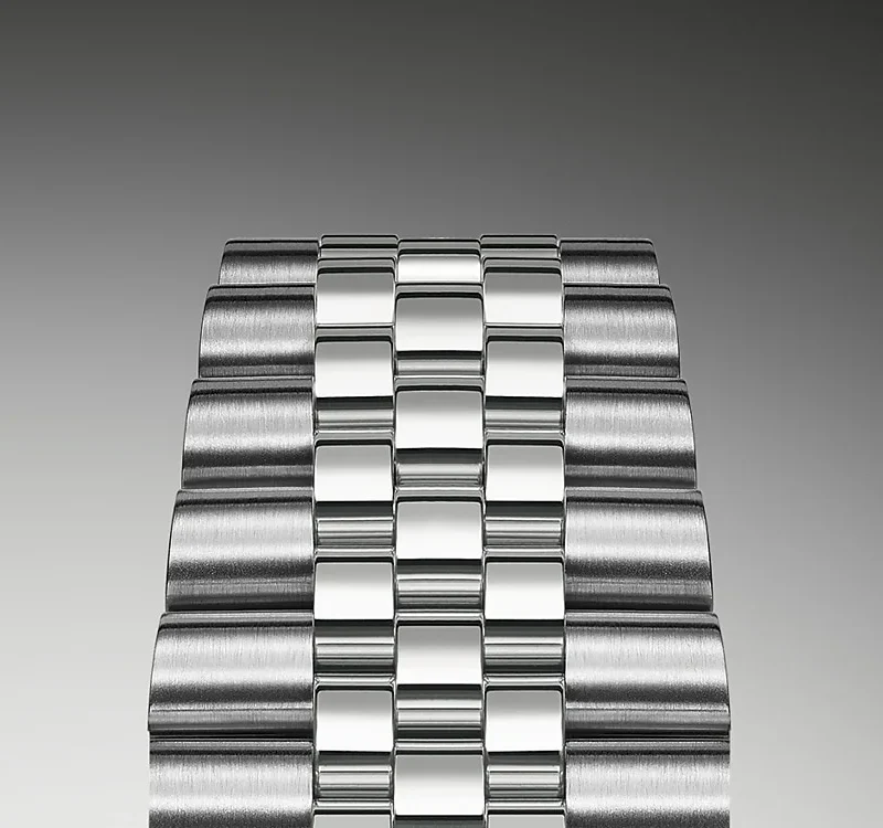 The design, development and production of Rolex bracelets and clasps, as well as the stringent tests they face, involve advanced high technology. And, as with all the components of the watch, aesthetic controls by the human eye guarantee impeccable beauty. The Jubilee, a supple and comfortable five-piece link metal bracelet, was designed and made especially for the launch of the Oyster Perpetual Datejust in 1945.