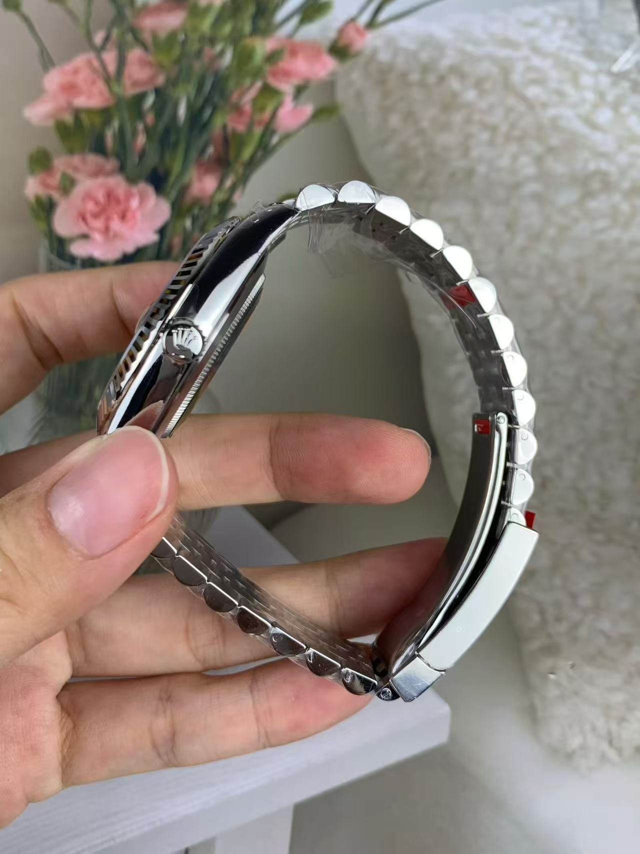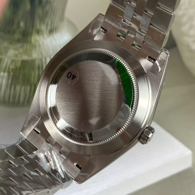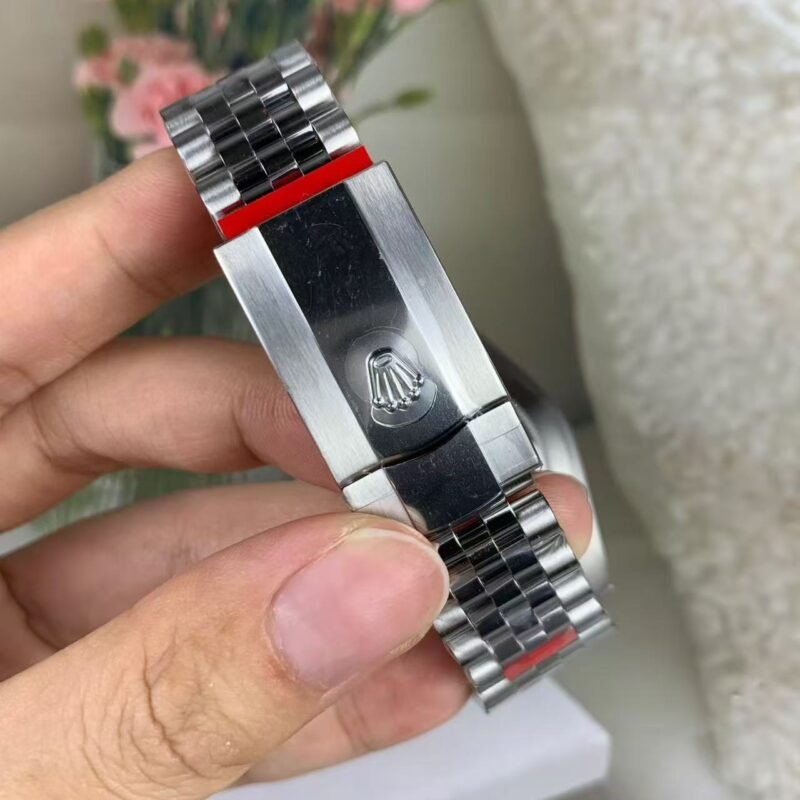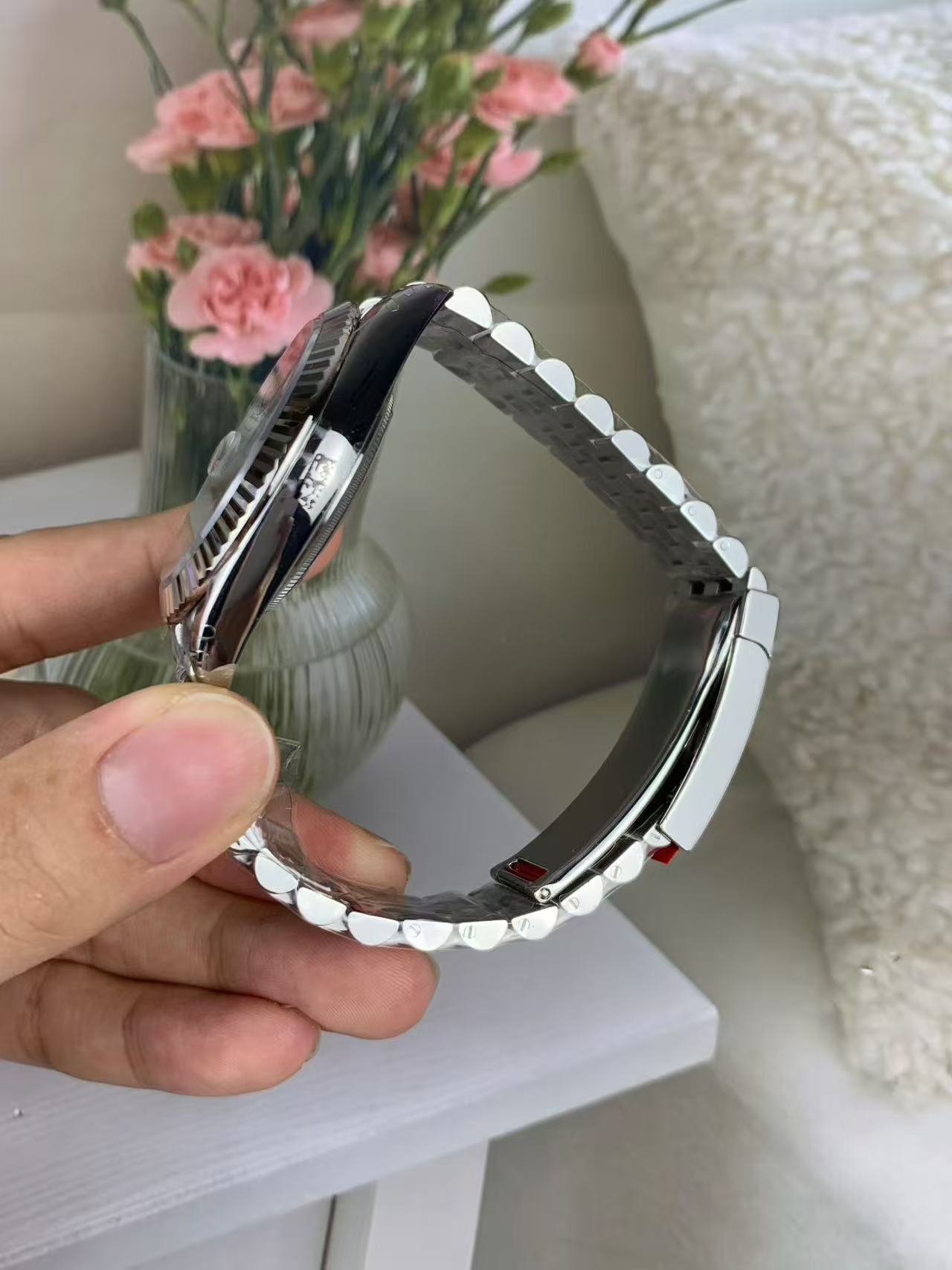 The light reflections on the case sides and lugs highlight the elegant profile of the 41 mm Oyster case, which is fitted with a fluted bezel. Aesthetically, the Datejust has spanned eras, while retaining the enduring codes that make it, notably in its traditional versions, one of the most recognized and recognizable of watches.