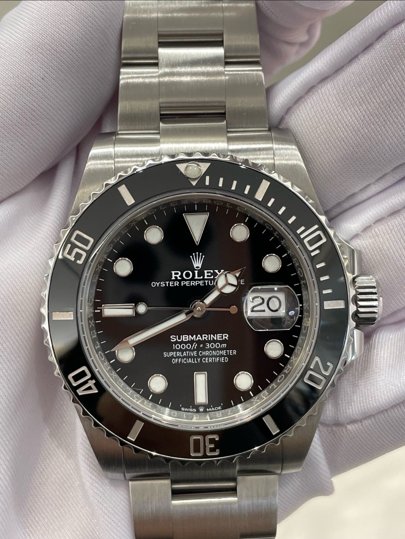 It is equipped with an Oysterlock clasp, which prevents accidental opening, and an ingenious Glidelock, allowing fine adjustments of the bracelet without using any tools — and allowing it to be worn comfortably over a diving suit.