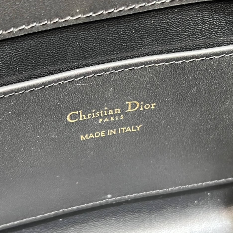 Double closure: a thin lace-through strap and a Christian Dior Paris strap with a CD Lock clasp