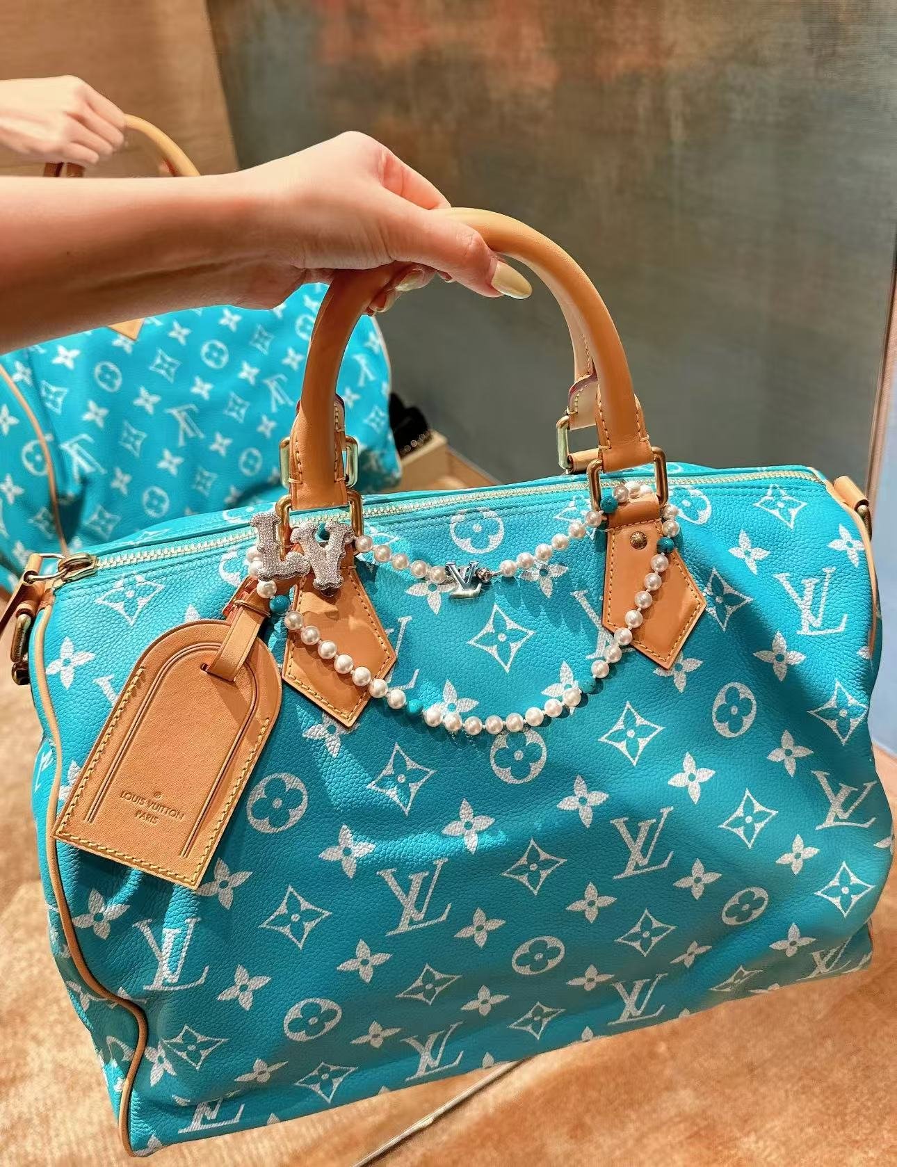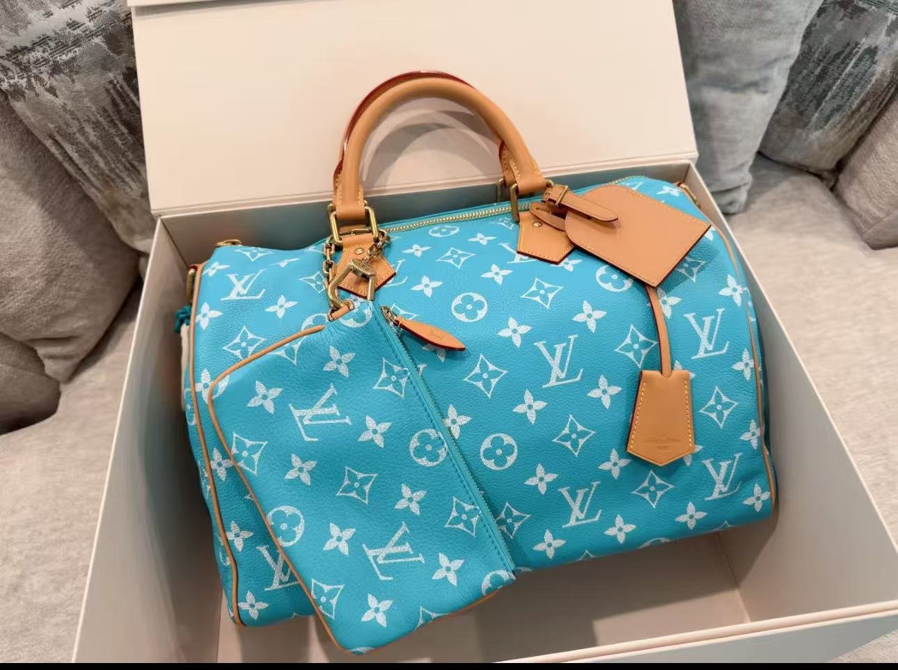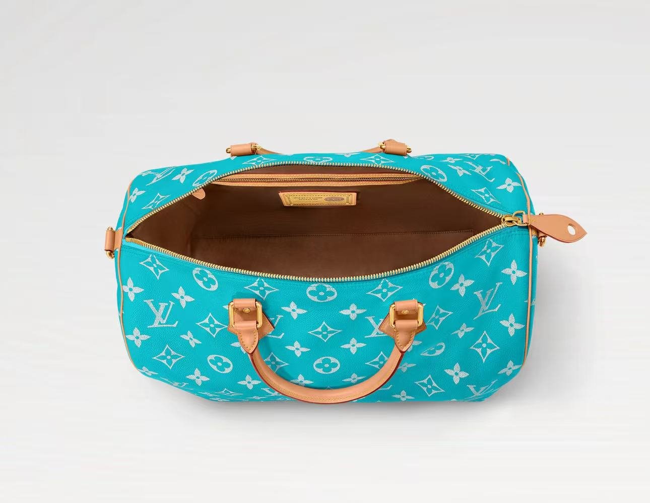 Creative Director Pharrell Williams revisits the iconic Speedy P9 Bandoulière 50 Monogram Leather bag in luxuriously soft and supple calfskin with the classic Monogram pattern. The Monogram is printed on the Speedy using a sophisticated silk-screen technique that reproduces the twill aspect of the Monogram on canvas, a blurry, almost hand-painted effect.